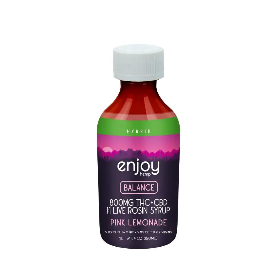 Enjoy Hemp || Balance 1:1 Live Rosin Delta 9 THC + CBD Pink Lemonade Syrup| 800MG