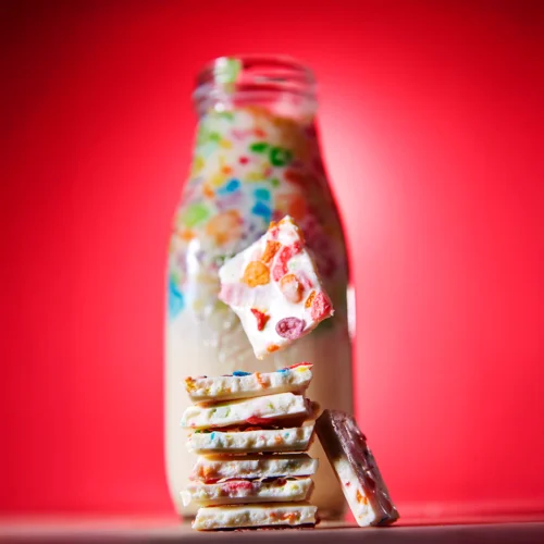 Crunchy Cereal Flavor: Smooth white chocolate meets fruity cereal for a fun, nostalgic twist.