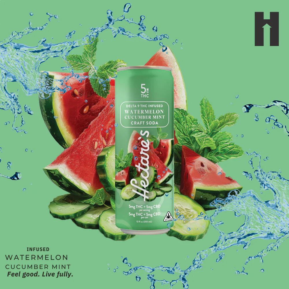 Hectare's || D9 THC+CBD Watermelon Mint Craft Soda | 12oz