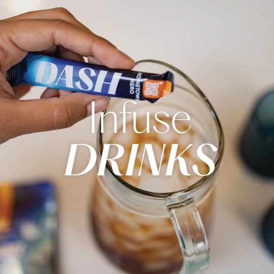 From your morning cold brew to evening cocktails, the possibilities of DASH are nearly endless. Stir it into sweet tea, lemonade, or sparkling water for an easy lift, or blend it into smoothies, juices, and sports drinks for a gentle boost. Beyond drinks, DASH pairs well with yogurt, melted butter for movie nights, BBQ sauce, and your favorite game day dips.