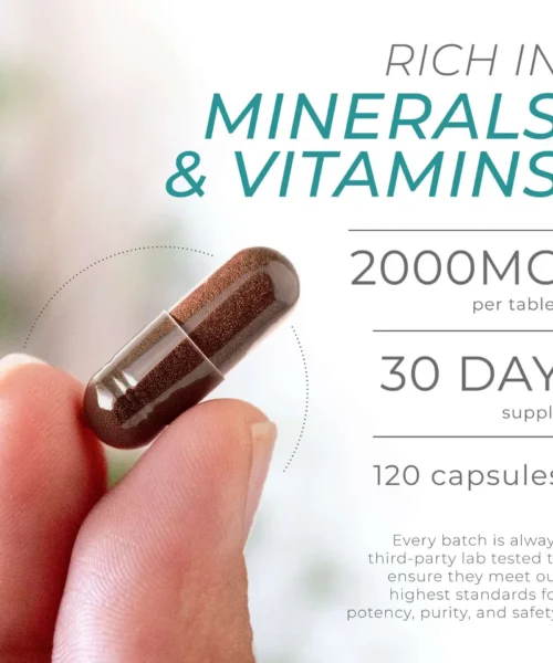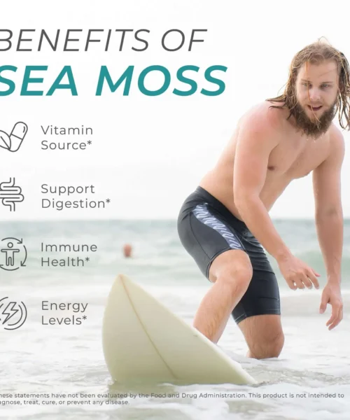Extracted from premium Irish coastal waters, each sea moss pill is rich in vitamins A, E, and K. 2000mg of pure sea moss per serving in a vegan, lab-tested bottle, with 120 capsules providing a full 30-day supply.