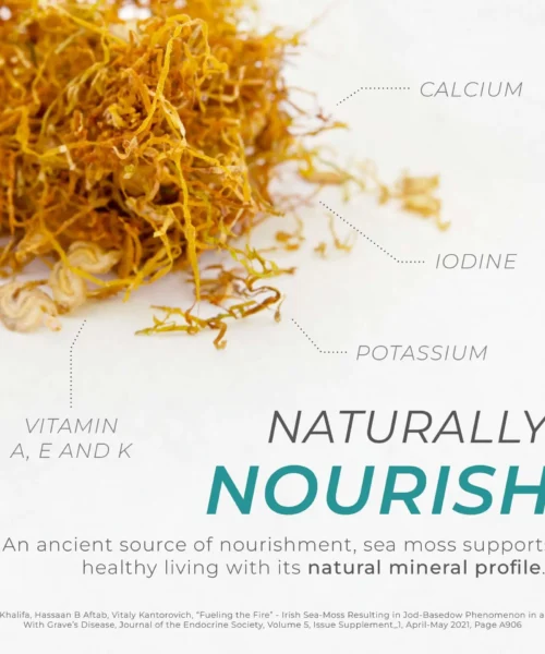 Our Irish Sea Moss capsules are packed with nutrients including iodine, potassium, calcium, and other amino acids to support lung detox, digestion, immunity, energy, and cellular health.