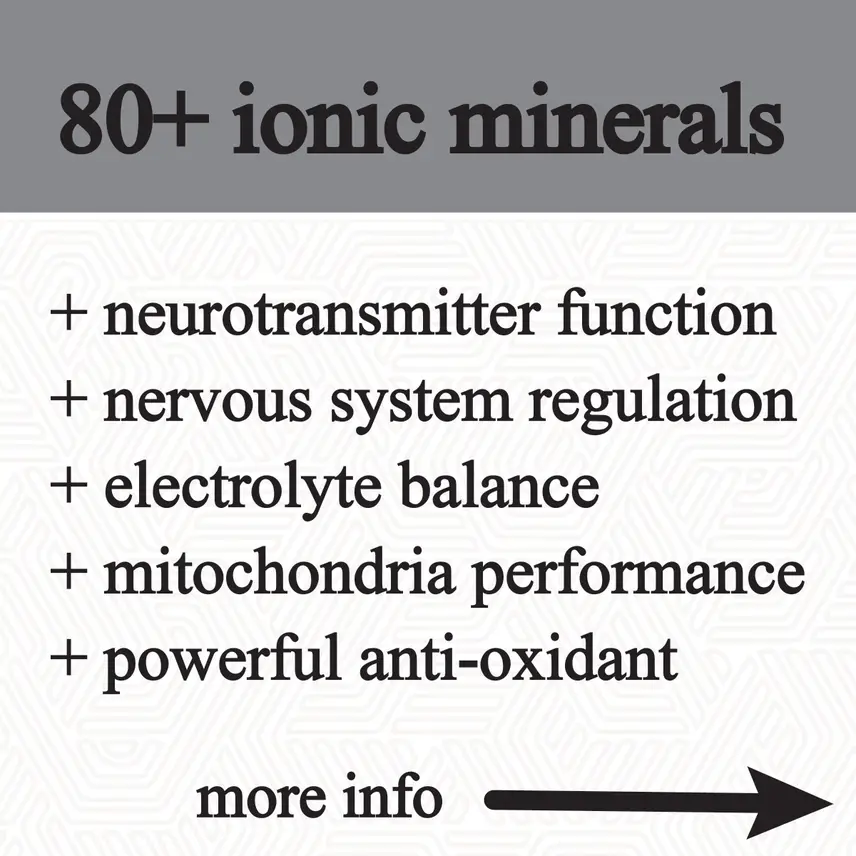 Fulvic acid binds to trace minerals (like magnesium, zinc, and iron) and keeps them in a stable, ionic form that’s easier for the body to absorb. A step further, Fulvic acid carries these bioactive minerals across cell membranes and into mitochondria where they’re used for hundreds of enzymatic processes, neurotransmitter production, energy metabolism, etc. Fulvic acid improves mineral bioavailability and cellular uptake to support energy, nervous system function, and overall health.
